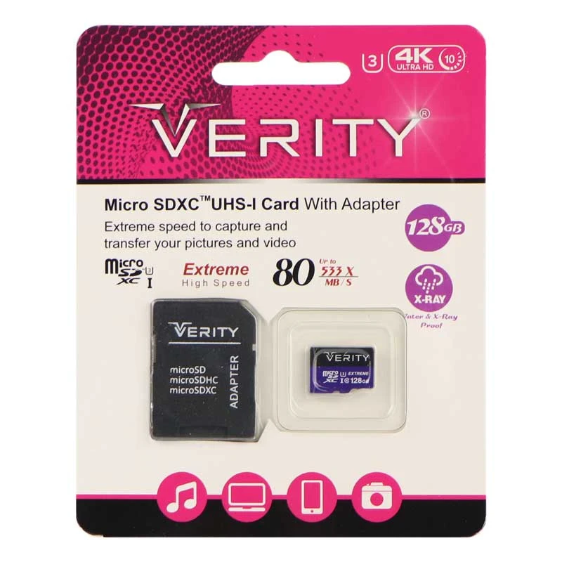 کارت حافظه microSDXC وریتی مدل 4K کلاس 10 استاندارد UHS-I U3 سرعت 80MBps ظرفیت 128 گیگابایت به همراه آداپتور