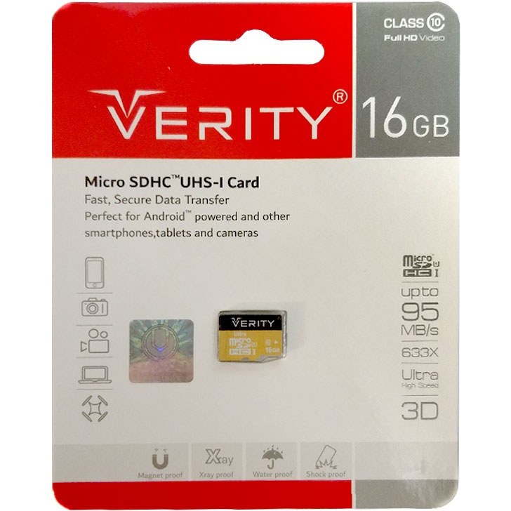 کارت حافظه وریتی مدل U106 ظرفیت ۱۶ گیگابایت کلاس ۱۰ سرعت ۹۵MB/s