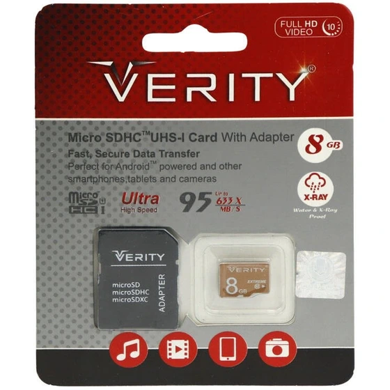 رم میکرو ۸ گیگ وریتی Verity Extreme U1 C10 95MB/s + تبدیل SD