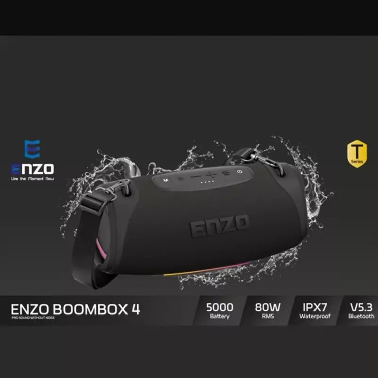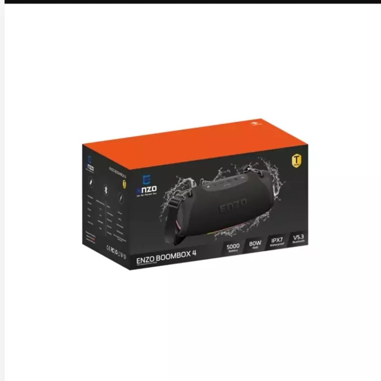 اسپیکر قابل حمل انزو مدل ENZO BOOMBOX4 با ابعاد 154x164x340 میلی متر و باتری پر قدرت 5000 میلی آمپر با توان واقعی 80 وات و توان اسمی 800 وات که کاملا ضد آب می باشد، می توان یکی از اسپیکرهای قابل فکر کردن باشد.