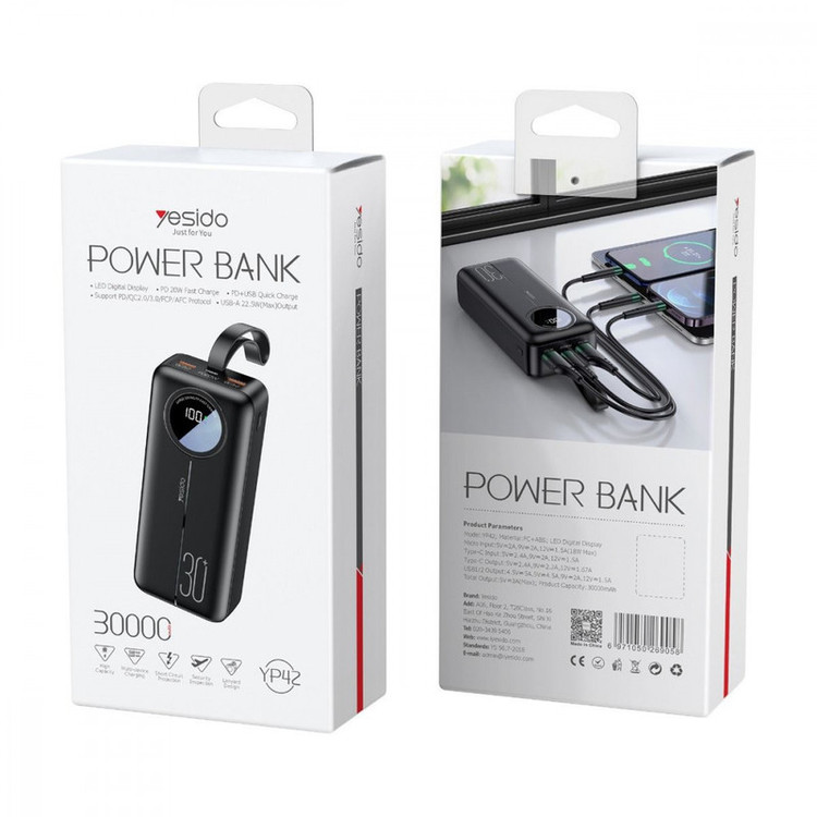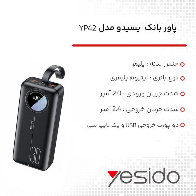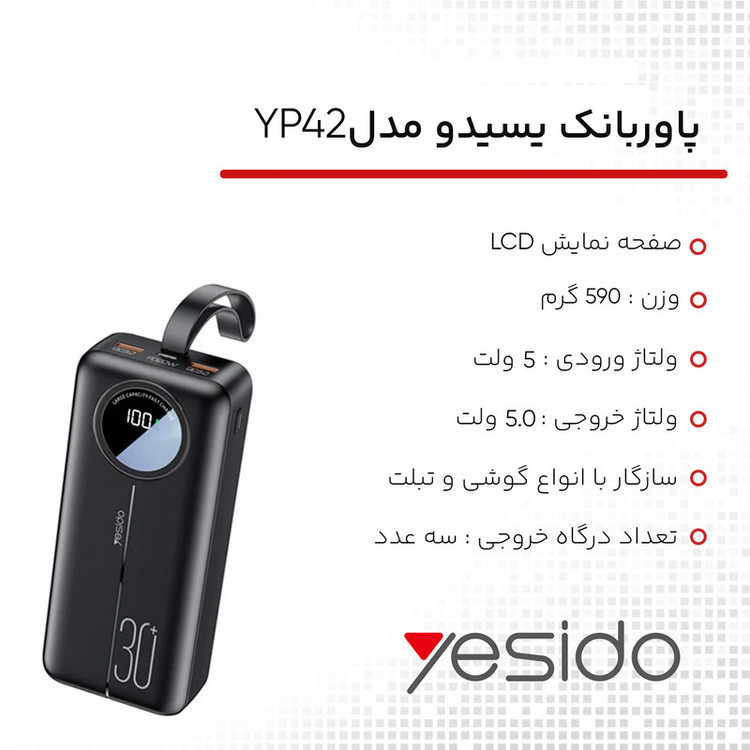 پاوربانک یسیدو مدل YP42 ظرفیت 30000 میلی آمپر ساعت