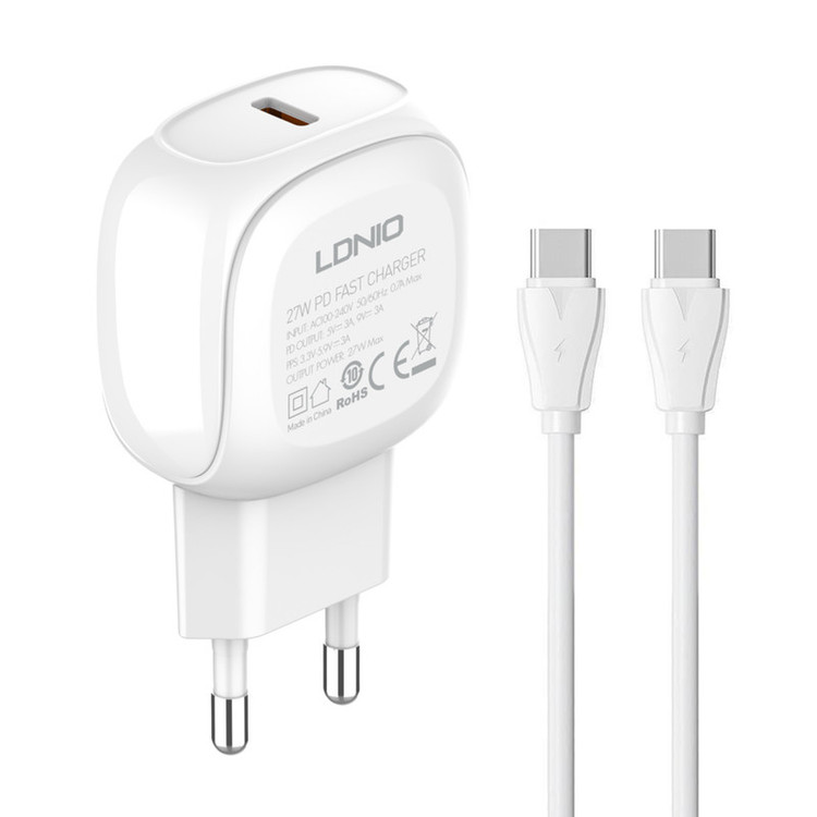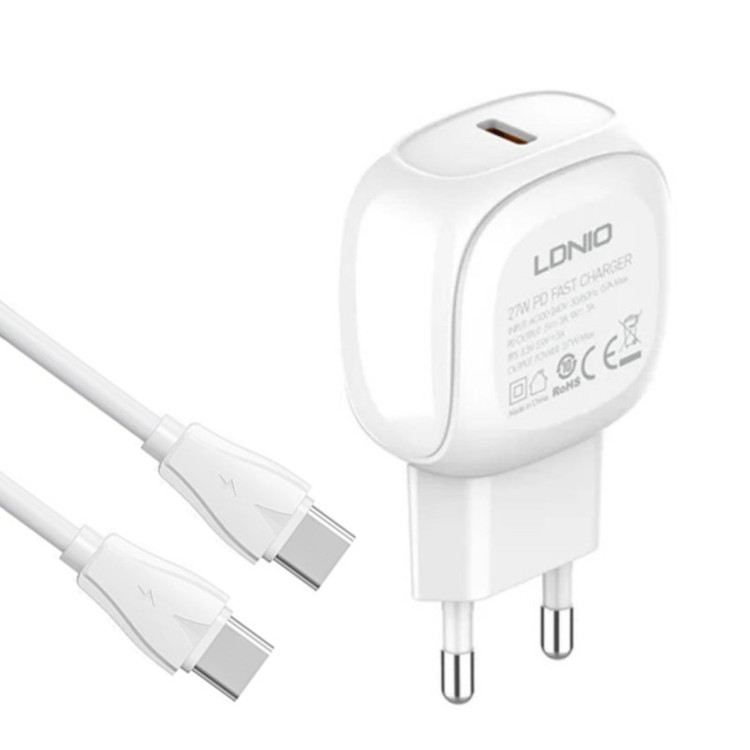 آداپتور شارژر 27 وات الدینیو مدل A1206C به همراه کابل تبدیل USB-C