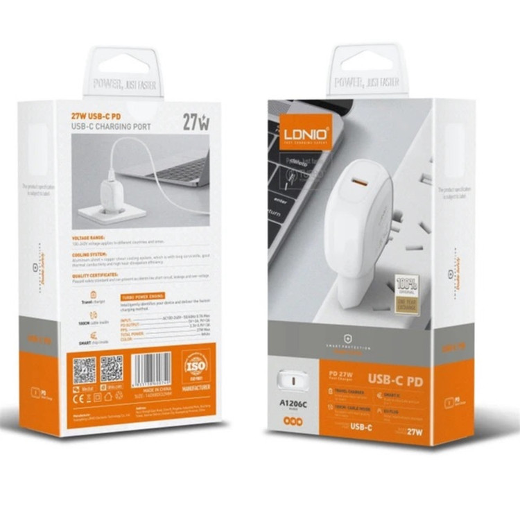 شارژر دیواری فست الدینیو مدل A1206C یکی از محصولات شرکت الدینیو است که نامی آشنا در زمینه لوازم جانبی موبایل می باشد. همچنین، این شارژر دارای امکانات و استانداردهای ایمنی متعددی است. با استفاده از مکانیزمهای محافظتی مانند محافظت در برابر برق گرفتگی، افزایش ولتاژ و دمای بالا، شما مطمئن هستید که دستگاههای شما در حین شارژ ایمنی کامل را تجربه میکنند. شارژر دیواری فست الدینیو مدل A1206C با حداکثر توان قابل پشتیبانی 27 وات دارای یک پورت دارای فناوری PD است. همچنین بدنه این دستگاه از پلاستیک بهبود داده شده ABS با قابلیت PC Fireproof می باشد و یک کابل دو سر type-c یک متری نیز به همراه آن است . این محصول از ایفون 14 پرو مکس و S22 سامسونگ و سایر موبایل های هوشمند و لبتاب نیز پشتیبانی می کند. امروزه خرید شارژر به اندازه خرید دستگاه هوشمند مثل گوشی و تبلت نیازمند توجه ویژه است. شارژرهای دیواری با امکان شارژ انواع گوشی، تبلت، ایرپاد، اسپیکرهای بلوتوثی و … یکی از محبوب ترین و البته رایج ترین شکل های شارژ وسیله الکترونیکی شما هستند. شارژر اگر طبق معیار و استانداردهای درست انتخاب نشود؛ باعث آسیب زدن به دستگاه یا باتری و کاهش عمر باتری میشود .