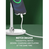 هولدرها در طرحها و مدلهای مختلفی تولید میشوند که میتوانید با استفاده از آنها کارهای خود را راحتتر انجام داده و محدودیت کمتری از این بابت داشته باشید. هولدر LDNIO MG05 Foldable Desk Phone Stand بازه حرکتی زیادی داشته و علاوه بر اینکه زاویه آن تا 90 درجه تغییر میکند، پایهاش هم تاشو است. این هولدر یا استند، بیشتر برای کسانی مناسب است که ساعات زیادی را صرف دیدن کلیپ و ویدئو در گوشی یا تبلت خود میکنند؛ با این هولدر دیگر نیازی به نگه داشتن خود گوشی و تبلت در دست نیست و می توانید بسیار راحتتر به دیدن کلیپ و... بپردازید. به راحتی زاویه دید را تغییر دهید و حتی گوشی و تبلتتان را شارژ کنید. این هولدر میتواند گوشیهای بین 4 تا 10.5 اینچ و تبلتهای بین 4 تا 12.9 اینچ را به راحتی نگه دارد. در بدنه این محصول از متریالهای مختلفی استفاده شده است که میتوان از آنها به ABS ،PC ،Silicon و آلیاژ آلومینیوم اشاره کرد. هولدر LDNIO Folding Stand MG05 به گونهای طراحی شده که شما امکان همیشه همراه داشتن آن را داشته باشید و با خود جا به جا کنید. کافیست پایه بلند آن را خم کنید تا تخت شده و به راحتی در کیف جا شود. قسمتی از هولدر که گوشی روی آن قرار میگیرد، دارای پد سیلیکونی است که همین امر باعث میشود تا شما پس از قرار دادن موبایل یا تبلت، نگران افتادن آنها نبوده و از این بابت خاطر جمع باشید. کف پایه نگهدارنده نیز با تکه های کوچک سیلیکونی پوشانده شده تا روی میز سر نخورد.