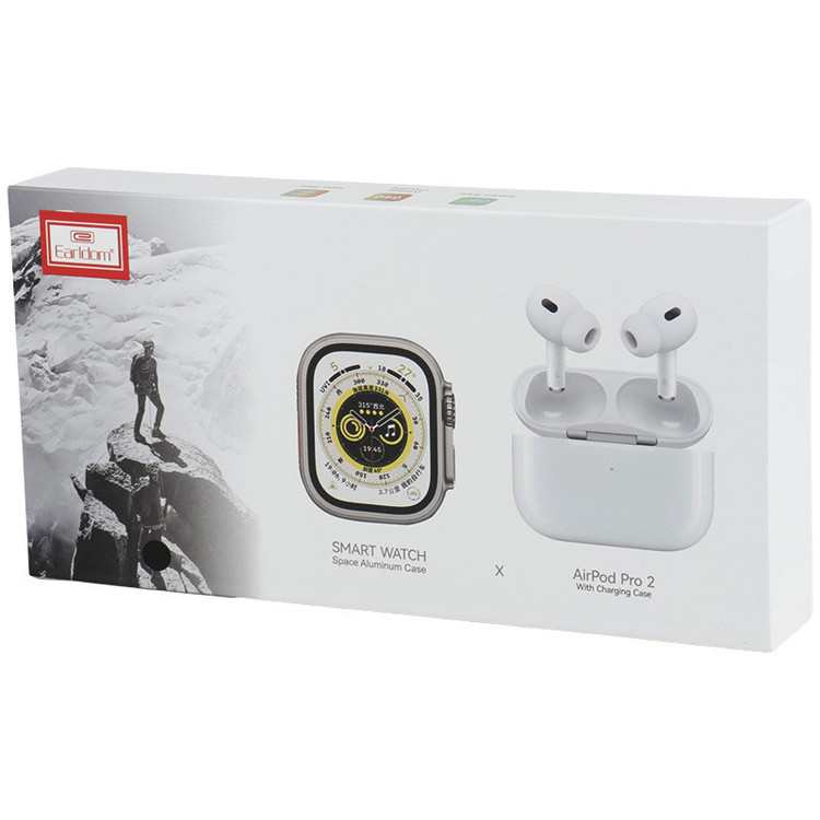 این مجموعه شامل 1عدد اسمارت واچ، 1عدد هندزفری بلوتوث دو تایی، کیس شارژ هندزفری، 1عدد بند، 1عدد شارژر بی سیم ساعت، 1عدد کابل لایتنینگ تامین انرژی ساعت از طریق باتری لیتیومی داخلی به ظرفیت 320 میلی آمپر ساعت با قابلیت شارژ از طریق شارژر مگنتی و شارژدهی در حالت استند بای به مدت 3 روز ساعت دارای صفحه نمایش لمسی و رنگی به فرم صفحه مربع ساخته شده از جنس شیشه مقاوم، با ابعاد 1.96 اینچ، امکان تغییر تم ساعت و دارای واچ فیس های متنوع روشن شدن صفحه نمایش ساعت با بالا آوردن مچ دست، موفق به کسب گواهینامه مقاومت در برابر نفوذ آب IP67 و استاندارد امنیت و سلامت محصولات CE امکان شارژ گوشی ها هندزفری بلوتوث از طریق قراردهی داخل داک شارژ و کیس شارژ توسط درگاه لایتنینگ در مدت زمان حدودی 2 ساعت توسط کابل همراه قابلیت استفاده به عنوان شاتر دوربین گوشی موبایل، مدیریت موسیقی، نمایش اعلان ها، ثبت تاریخچه تماس ها، پشتیبانی از حالت های مختلف ورزشی نوع اتصال ساعت بی سیم از طریق بلوتوث نسخه 5.1، دارای میکروفون داخلی با قابلیت مکالمه، پشتیبانی از تماس بلوتوثی و پشتیبانی از زبان فارسی کیس شارژ مجهز به شیار جهت اتصال بند، دارای بند همراه جهت سهولت در حمل، بهره مند از نشانگر LED جهت اطلاع از وضعیت محصول اتصال هندزفری به صورت بی سیم توسط بلوتوث نسخه 5.3 با برد اتصال مفید 10 متری، مجهز به میکروفون داخلی جهت برقراری تماس مجهز به سنسور های ضربان قلب، فشار و اکسیژن خون، پایش وضعیت خواب، ثبت مسافت طی شده، گام شمار، مانیتورینگ دمای بدن تامین انرژی گوشی ها از طریق باتری داخلی لیتیومی با ظرفیت 30 میلی آمپر ساعت و کیس شارژ برابر با 300 میلی آمپر ساعت دارای یک عدد بند سیلیکونی با قفل بند از نوع سگکی فلزی، دارای قابلیت پیدا کردن گوشی موبایل و اپلیکیشن اختصاصی SZOS بدنه ساعت ساخته شده از جنس آلیاژ آلومینیوم و پلاستیک مقاوم در برابر آسیب های فیزیکی احتمالی همچون ضربه و فشار برخورداری از سنسور شتاب سنج، کرونومتر، پایش تنفس، کالری شمار، قابلیت نمایش وضعیت آب و هوا و مجهز به چراغ قوه ساعت سازگار با سیستم عامل های اندروید 5.1 به بالا و IOS نسخه 8.0 به بالا دارای دکمه فیزیکی چرخان کناری و دکمه پاور مقاوم در برابر آب و گرد و غبار با دارا بودن گواهی IPX4، دارای گواهینامه اصالت و سلامت محصول شامل CE/ FCC/ RoHS
