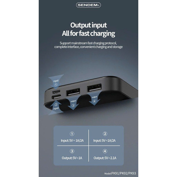 پاوربانک سندم مدل pk91 ظرفیت 10000 میلی آمپر ساعت