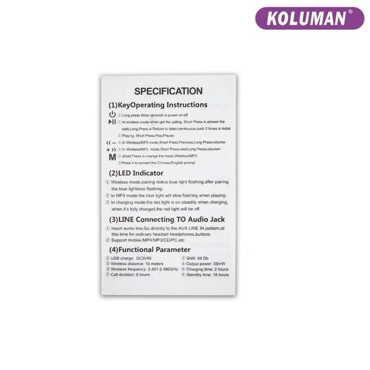 مشخصات کلی نوع هدفون رو گوشی -On/Over Ear نوع گوشی دو گوشی نوع طراحی ارگونومیک نوع کاربری عمومی محدوده عملکرد 10 متر قابلیت مکالمه دارد دستگاه های سازگار گجت های دارای بلوتوث و AUX استاندارد IP نامشخص جنس بدنه پلاستیک فشرده وزن 150 گرم ابعاد نامشخص مناسب برای مکالمه , گیمینگ , ورزش , کاربری عمومی اقلام همراه کابل شارژ ویژگیهای خاص بدون ویژگی خاص سایر مشخصات دارای قابلیت مکالمه - دارای پایه های چرخشی - دارای جک های تنظیم ارتفاع - دارای بالشتک های ضد عرق و نرم - دارای صفحه کلید مدیریت میزان صدا - دارای ال ای دی - دارای قابلیت پشتیبانی از درگاه AUX - قابلیت اتصال به گجت های دارای بلوتوث و AUX همچون لپ تاپ ، گوشی موبایل و غیره - دارای رنگ بندی متنوع - دارای ارگونومی مناسب برای قرارگیری روی گوش - دارای قابلیت ساپورت کارت حافظه - دارای گواهی CE اروپا - داری گواهی FC اروپا - دارای حالت ذخیره انرژی امکانات ارتباطی NFC درگاههای ارتباطی microUSB نسخه بلوتوث 5 قابلیت حذف صدای مزاحم (Noise Cancelling) دارد حساسیت صوتی نامشخص امپدانس 32 اهم محدوده فرکانسی 20 هرتز تعداد درایور نامشخص قطر درایور 40 میلی متر و بیشتر تعداد میکروفون ها دارای میکروفون داخلی برای پاسخگویی به تماس ها نوع باتری لیتیوم پلیمری قابلیت شارژ سریع نامشخص ظرفیت باتری محفظه شارژ فاقد محفظه شارژ ظرفیت باتری گوشی ها 200 میلی آمپر عمر باتری هدفون در حالت پخش موسیقی حدود 5 ساعت عمر باتری هدفون در حالت مکالمه 3 ساعت عمر باتری هدفون در حالت استندبای نامشخص مدت زمان شارژ باتری محفظه فاقد محفظه شارژ مدت زمان شارژ گوشی ها 1 تا 2 ساعت نوع رابط کاربری نامشخص قابلیت های مقاومتی نامشخص پشتیبانی از دستیار صوتی ندارد نشانگر LED دارد قابلیت تنظیم صدا دارد انطباق با استانداردهای صدا تا حدودی قابلیت اتصال به چند دستگاه به صورت همزمان نامشخص