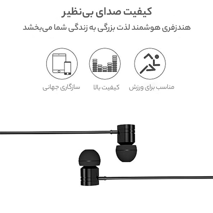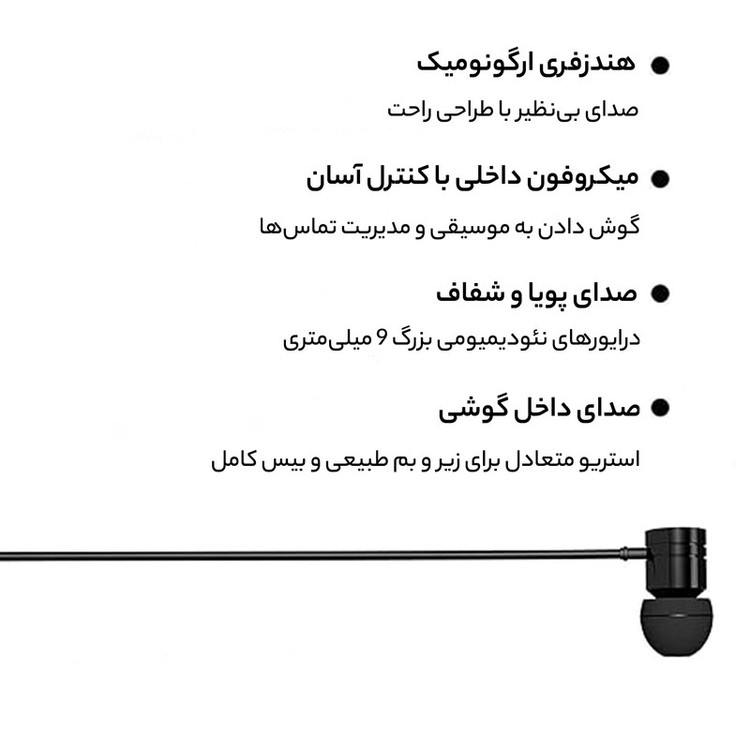 دارای و عدد سری سیلیکونی اضافه-طراخی گوشی با استفاده از الومینیوم-بیس قوی-دارای پنل کنترل پخش موسیقی و تماس- دارای طراحی خاص برای بهتر قرار گرفتن درون گوش