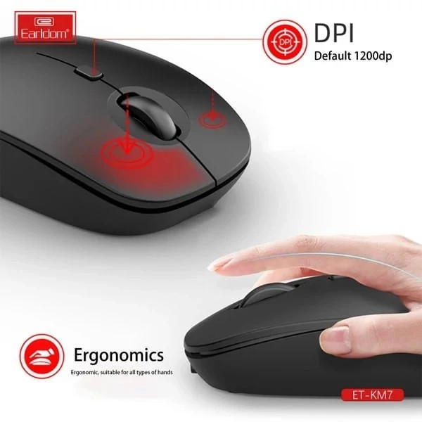 این ماوس بیسیم با یک عدد دانگل بلوتوثی به دستگاه کامپیوتر یا لپ تاپ شما متصل میشود. این ماوس بهگونهای طراحی شده که میتوانید با هر دو دست و بهراحتی با آن کار کنید. قابلیت اتصال بیسیم ماوس km7 به شما این امکان را میدهد تا آزادانه از آن استفاده کنید و هیچ سیمی میز کارتان را اشغال و نامرتب نکند. اتصال 2.4 گیگاهرتزی که این ماوس با گیرندهی خود برقرار میکند، باعث میشود هیچ امواجی از دست نرود و کوچکترین حرکت ماوس هم شناسایی شود؛ همچنین قادر است تا فاصلهی حدودا 10 متری به شما خدمت کند. ماوس KM7 از یک حسگر اپتیکال با قابلیت تشخیص 1600DPI بهره میبرد.