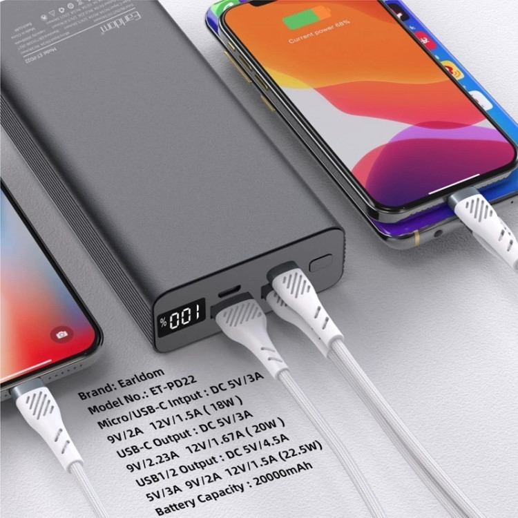 پاوربانک فست شارژ 20000 ارلدم 22.5W Earldom PD22
