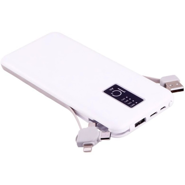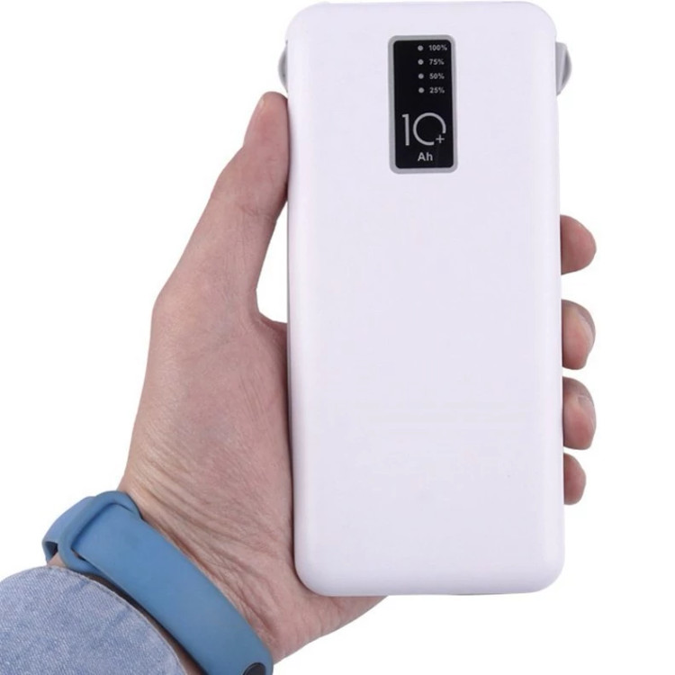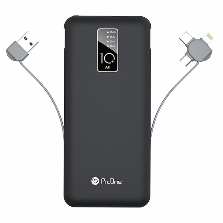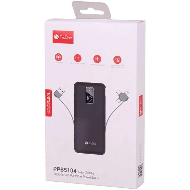 ظرفیت باتری 10000 میلیآمپرساعت مشخصات کلی ظرفیت 10000 میلیآمپر ساعت ابعاد/ وزن 139.69x68.56x21.61 میلی متر/ 227.6 گرم سازگاری گوشی های اندروید و iOS جنس بدنه پلاستیک تعداد پورت خروجی 4 عدد، 4 کابل خروجی متصل از نوع Type-C ،Micro-USB ، Lightning ، USB نشانگر LED دارد نحوه نمایش میزان شارژ باتری دارای صفحه نمایش شدت جریان ورودی 2 آمپر ولتاژ ورودی 5 ولت شدت جریان خروجی 2 آمپر ولتاژ خروجی 5 ولت سایر قابلیت ها دارای کابل متصل به بدنه نوع باتری لیتیوم پلیمر زمان شارژ کامل پاوربانک 15 ساعت