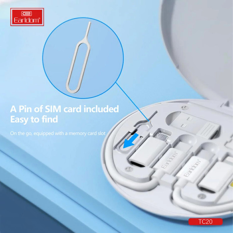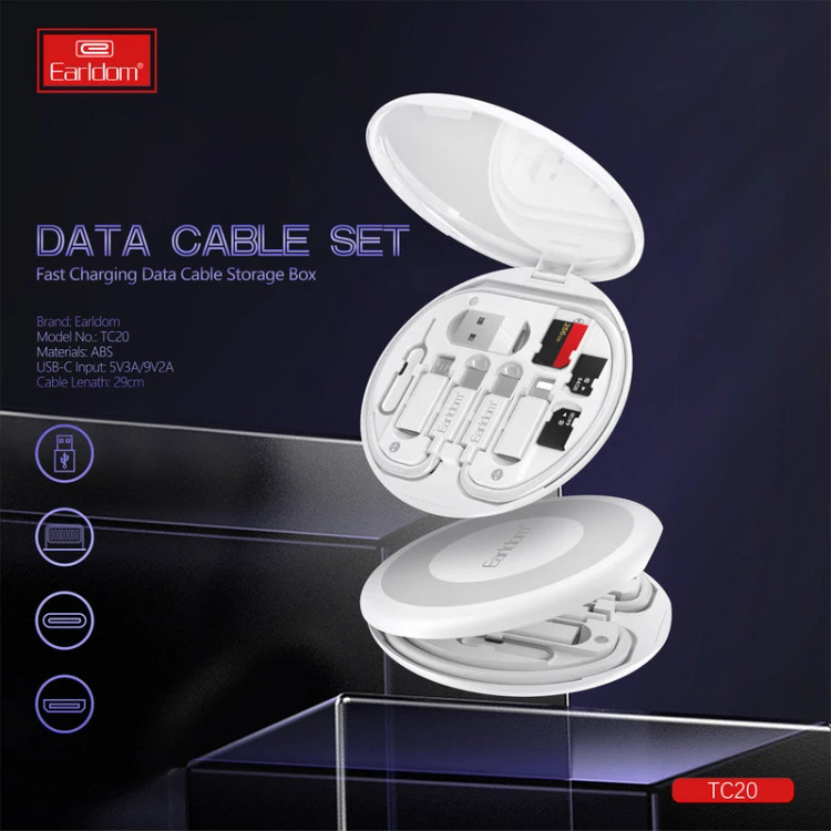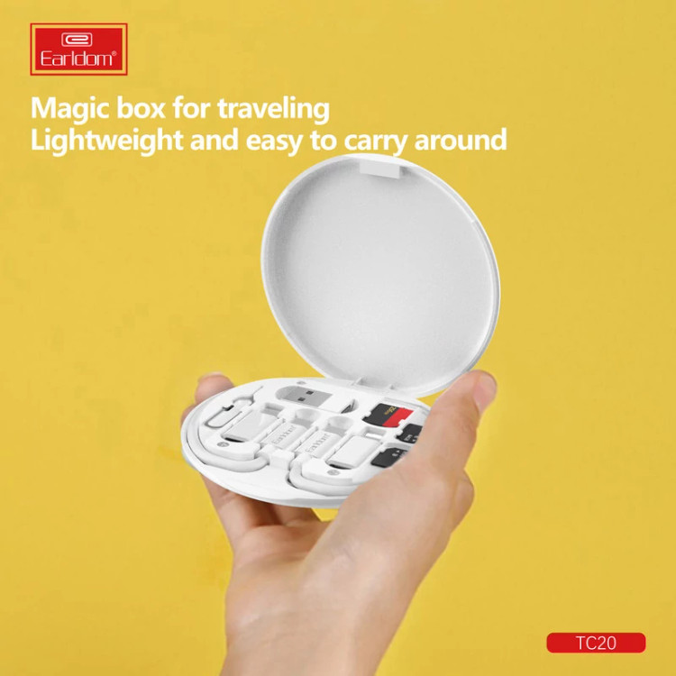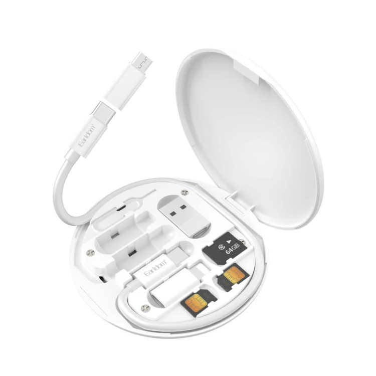 این مجموعه نیاز شما به یک کابل شارژ و دیتای USB-C کوتاه و جمع و جور در هر محل را بر طرف می سازد. از طرف دیگر همراه داشتن انواع مبدل های USB-C امکان شارژ انواع گوشی و تبلت را برای شما محیا سازد. مبدل های USB-C در یک پک پلاستیکی کاملا مقاوم و دایره ای، به شکلی کاملا جمع و جور جای گرفته اند. مبدل ها شامل تبدیل USB-C به Micro USB، USB و لایتنینگ اپل می باشد. همچنین یک سوزن تعویض سیمکارت به همراه دو جای نگهداری میکرو سیمکارت و رم و همچنین یک جای نگهداری سیمکارت نیز در بین اسلات برای کاربر تعبیه شده است. کاربرد دیگر این پک امکان استفاده از پایه های پلاستیکی نصب شده در پشت پک به عنوان استند گوشی می باشد .