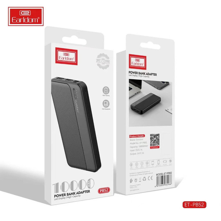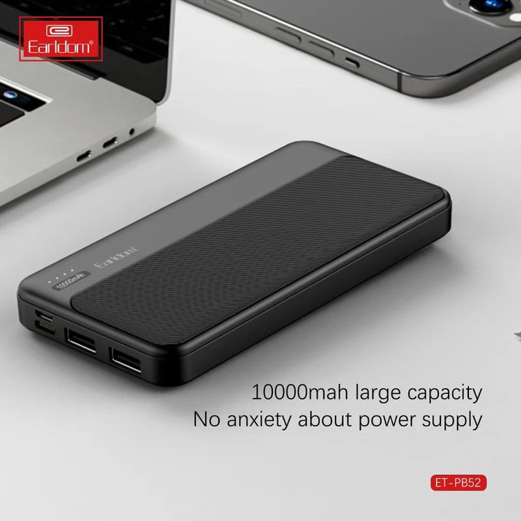پاوربانک ارلدام مدل ET-PB52 ظرفیت 10000 میلی آمپر ساعت