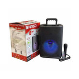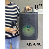 اسپیکر کیمیسو مدل QS-840 با یک بلندگوی 8 اینچی قدرتمند برای تولید صدای شفاف در محیط هایی که به صداهای مختلف نیاز است طراحی شده و به زبان ساده هر نوع صدایی که میتوان به صورت با کیفیت در محیط شنید را برای شما تولید میکند. اسپیکر بیسیم QS-840 از سری اسپیکرهای تولید شده توسط کمپانی کیمیسو است که به عنوان اسپیکر بی سیم روانه بازار شده است. این اسپیکر دارای قابلیت اتصال میکروفون است که با استفاده از این قابلیت میتوانید در میکروفون خود بخوانید و صدای خود را از این اسپیکر بشنوید.این اسپیکر بیسیم دارای باتری لیتیوم یونی قابل شارژ است. با استفاده از این باتریهای قابل شارژ میتوانید این اسپیکر را در هر زمان به هر مکان که مایل هستید به همراه خود ببرید و به موسیقیهای مورد علاقه خود گوش دهید. همچنین با هربار شارژ این اسپیکر نیز میتوانید تا ساعتها از پخش موسیقی لذت ببرید. اسپیکر QS-840 دارای ورودی میکروفون است. با استفاده از این ورودی میکروفون میتوانید میکروفون خود را به این دستگاه متصل کنید و با استفاده از قابلیت کارائوکه به صورت یک اجرای زنده صدای خود را از اسپیکر بشنوید. همچنین میتوانید یک موسیقی بیکلام پخش کنید و روی آن بخوانید. اتصال به این اسپیکر به دو صورت باسیم و بیسیم امکانپذیر میباشد. اتصال بیسیم از طریق بلوتوث و اتصال باسیم از طریق AUX، USB، Line و Micro SD Card صورت میگیرد. بنابراین با هرکدام از روشهای اتصال، میتوانید به این اسپیکر متصل شوید و موسیقیهای مورد علاقه خود را پخش کنید. بر روی قسمت پشتی این اسپیکر، تعدادی دکمه و کنترلکنندههای چرخشی قرار گرفته است. با استفاده از این پنل کنترلکننده، میتوانید به کنترل مقدار صدا و همچنین میتوانید با استفاده از دکمههای تعبیه شده بر روی این پنل، پخش موسیقیهای خود را نیز در کنترل خود قرار دهید. در قسمت پنل کنترلکنندهی این اسپیکر، یک صفحه نمایش دیجیتال قرار گرفته است.