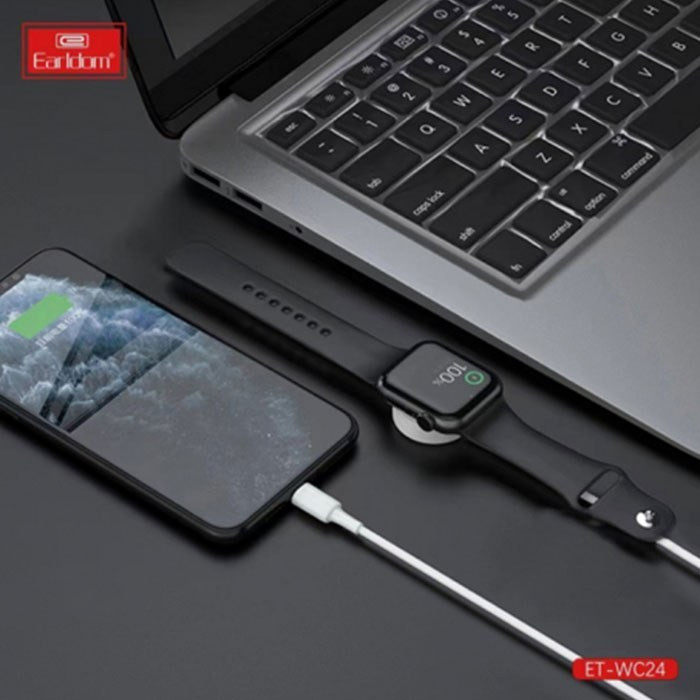 کابل دو سر فست شارژ تایپ سی به لایتنینگ 2 آمپر و شارژر وایرلس اپل واچ 2.5 وات ارلدام ET-WC24
