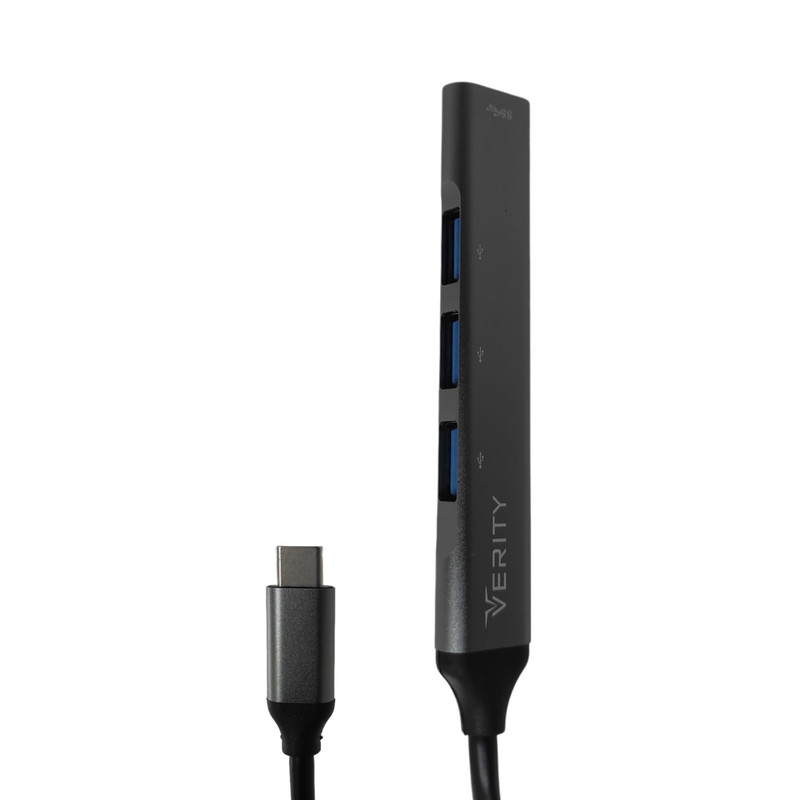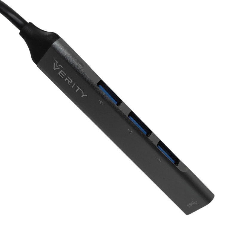 کامپیوتر یکی از وسایلی است که از پورت یو اس بی آن برای اتصال لوازم جانبی استفادههای فراوانی میشود. هاب یو اس بی (HUB USB DENT) یعنی تبدیل یک پورت یو اس بی به چند پورت دیگر، چندی پیش HUB را در شبکههای ستارهای میشنیدیم؛ یعنی اتصال چند کامپیوتر با کابلهای یو اس بی به هم اما امروزه برای اضافه نمودن پورت جهت لوازم جانبی استفاده میشود. اگر بهزودی نوت بوک یا لپتاپ جدید خریداری نموده باشید متوجه کمبود پورتهای آن خواهید شد. در برخی موارد این تعداد به دو عدد میرسد یک موس و یک هارد اکسترنال و دیگر جایی نیست. تصور کنید فلش، هارد اکسترنال، موس، مودم دیال آپ، آیفون، آی پد، دستگاه بلوتوث و… را بخواهیم همزمان به سیستم از طریق USB وصل نماییم و سیستم خانگی شما نهایتاً 4 پورت دارد و اگر پورتهای جلویی را بخواهید جزء پورتها نام ببرید ازآنجاییکه برق کافی ندارند، کارت تلویزیون یا هارد اکسترنال را نمیتوان به این نوع پورت متصل کرد. هاب 4 پورت USB 3.0 وریتی مدل H410 دارای پورت ورودی Type-C و 4 پورت خروجی USB3.0 است که با توجه به طراحی و چیدمان زیبای پورت ها می توانید از تمامی پورت های این هاب USB استفاده کنید.دارای بدنه مقاوم و کوچک، پشتیبانی از اتصال Plug & Play بدون نیاز به نصب درایور مجهز به چهار پورت از نوع USB 3.0 با کابل متصل به طول 12٫5 سانتی متر و رابط از نوع USB مناسب برای اتصال فلش مموری، کیبورد، موس و … با قابلیت انتقال اطلاعات در دستگاه سازگار