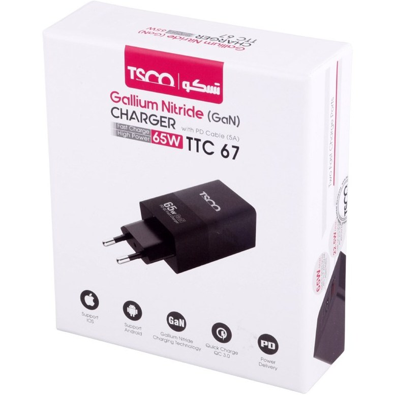 شارژر دیواری تسکو مدل TTC67 توان ۶۵ وات با کابل USB-C
